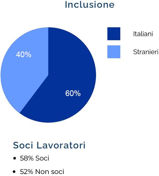 La Cooperativa non ricorre o sostiene alcuna forma di discriminazione nell’assunzione, retribuzione, accesso alla formazione, promozione, cessazione del rapporto o pensionamento, in base a razza, origine, religione, disabilità, genere, orientamento sessuale, stato civile, appartenenza sindacale, opinioni politiche, età.